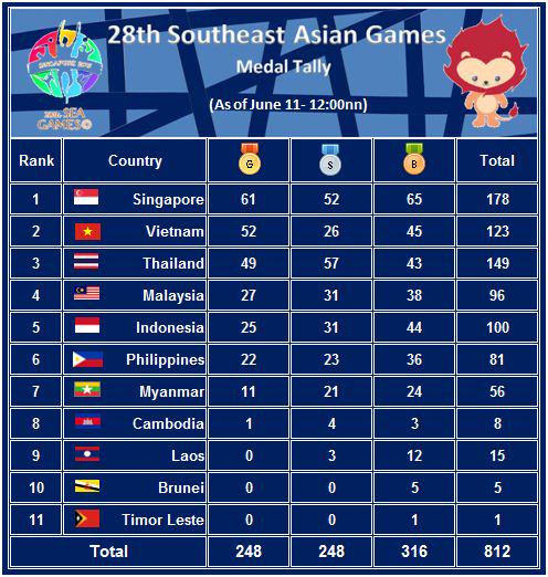 Abs Cbn Sports 2015 Sea Games Medal Tally As Of June 6 11 30 Am Facebook